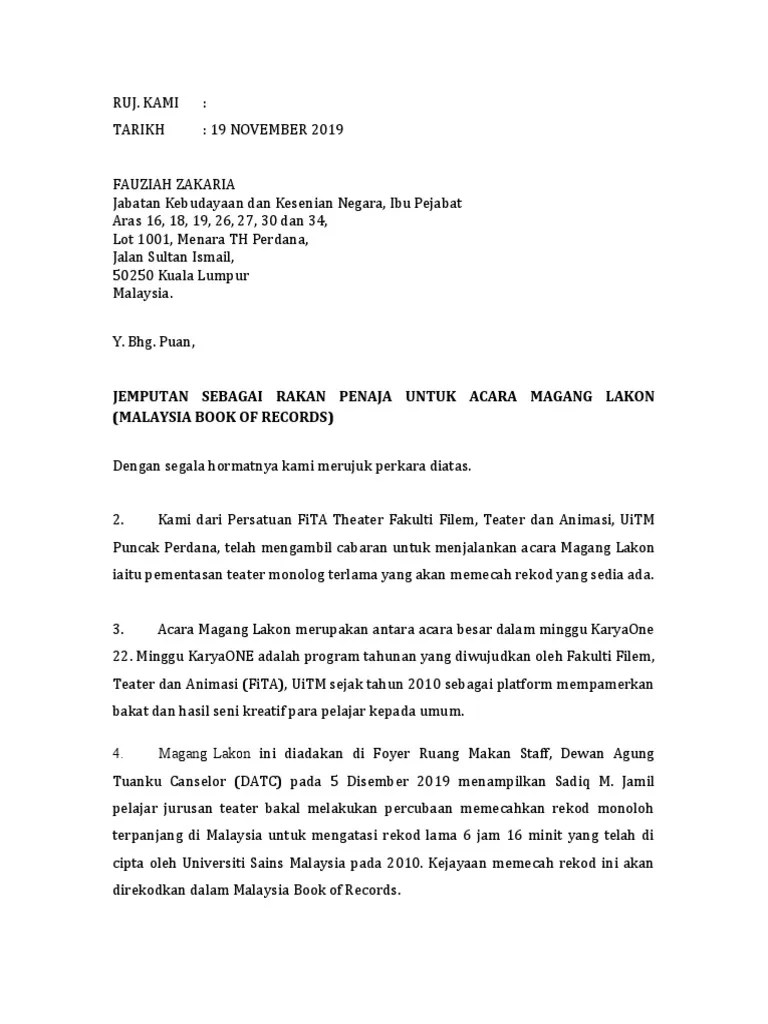 Surat rasmi permohonan bantuan kewangan perniagaan. Biasanya, para mahasiswa/i yang terlibat dalam program yang .